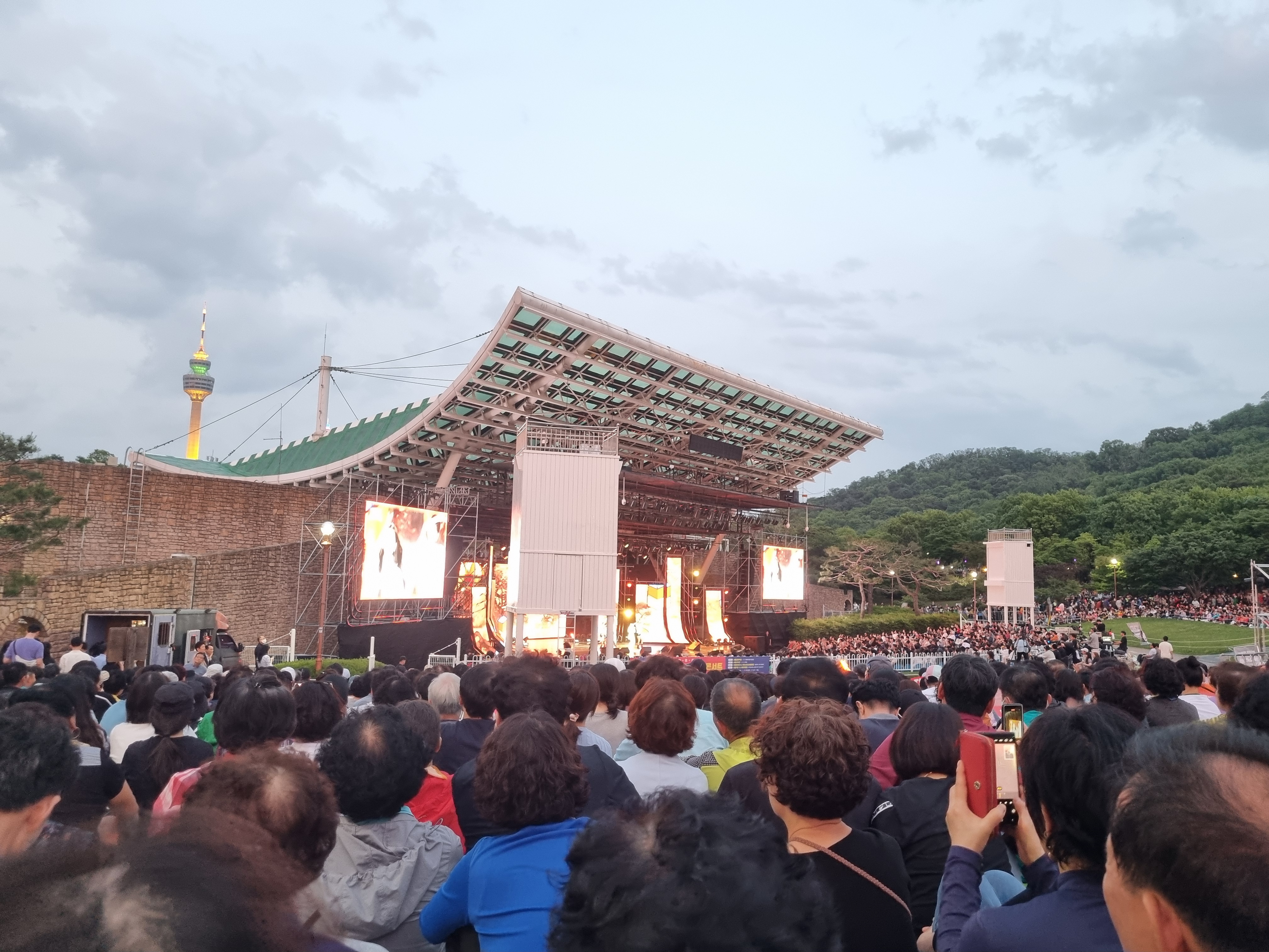 오전 다른 일정이 있어서 오후 7시에 딱 맞춰 도착했는데 마침 사이드 쪽 자리가 있어서 그냥 앉았는데 그때 앉지 못했다면 계속 서서 공연을 볼 뻔했어요. 앉고 보니 굉장히 좋은 자리였더라고요. 사람들이 많이 올 거라 예상은 했지만 정말 정말 많은 인파들이 모여있었어요. 정말 깜짝 놀랐답니다.