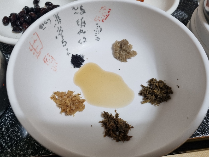 흑마늘, 돼지감자, 더덕, 민들레, 뽕잎으로 만드신거래요.